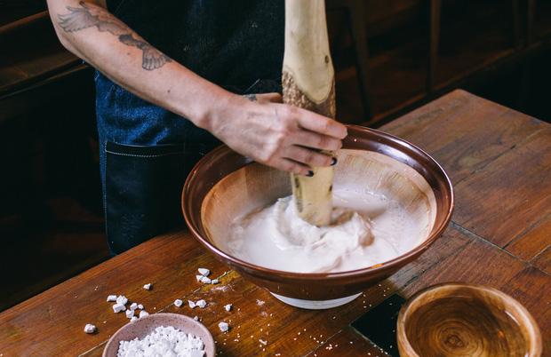 Để làm ra được món ăn này người Nhật phải dùng tay bóp nát hạt vừng, rồi dùng chày giã cho nhuyễn mịn, tương tự với sắn dây. Bột càng mịn thì thành quả càng đẹp và giống… đậu phụ hơn. Lý giải cho sự mất công này, người ta chỉ có thể nói tính thẩm mỹ quả thực rất quan trọng trong ẩm thực Nhật. Để khiến món vừng bình dân trở nên đẹp mắt, người Nhật không tiếc công sức và thời gian.