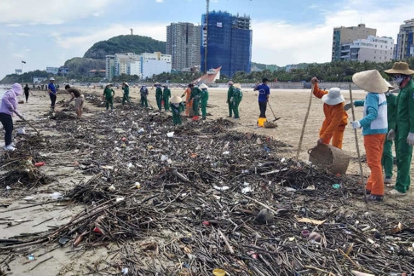 TP Vũng Tàu đã huy động 3.300 người gồm công nhân các hợp tác xã, bộ đội, thanh niên, học sinh và nhiều du khách nước ngoài cùng chung tay dọn rác. Một số khu du lịch chủ động dọn rác và thuê phương tiện giải tỏa lượng rác trên bãi biển.