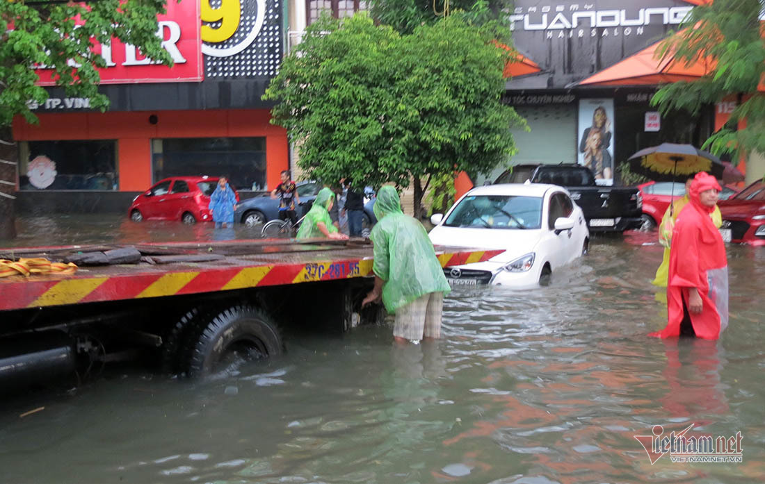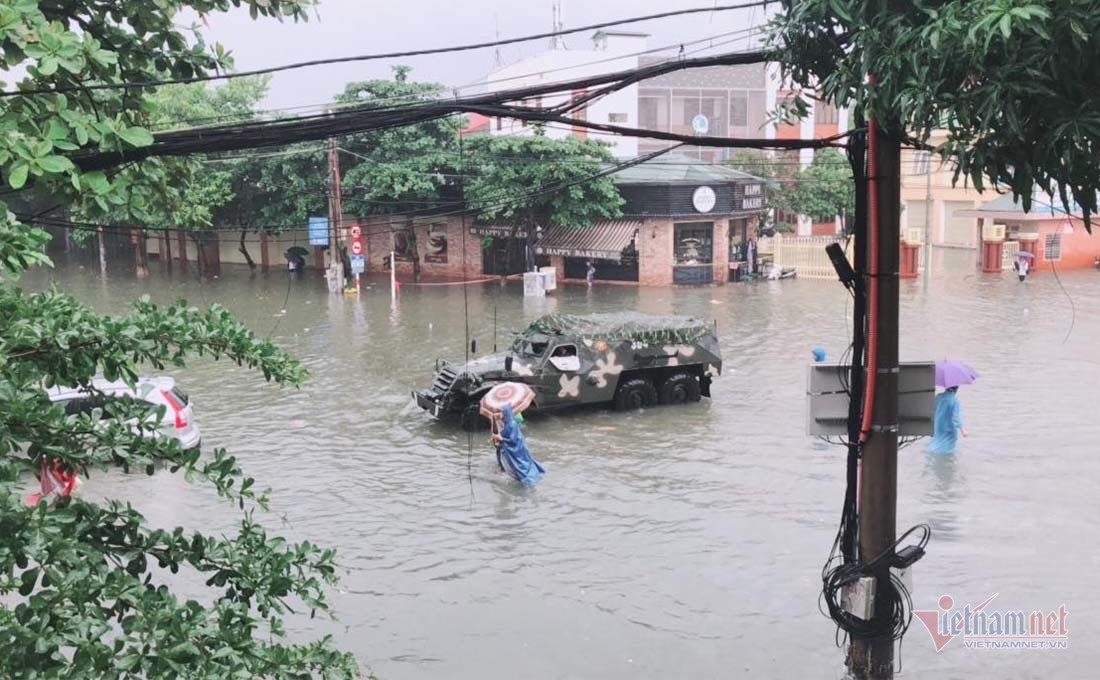 Phó chủ tịch UBND TP.Vinh Đậu Vĩnh Thịnh cho biết, chưa bao giờ thấy trận mưa kinh hoàng như lần này. Các tuyến đường ở TP.Vinh đều chìm trong nước. “Lực lượng công an, quân đội được huy động hỗ trợ, giúp đỡ trường học trong việc đảm bảo cơ sở vật chất được an toàn và đưa học sinh thoát khỏi vùng ngập lụt” - ông Thịnh thông tin.