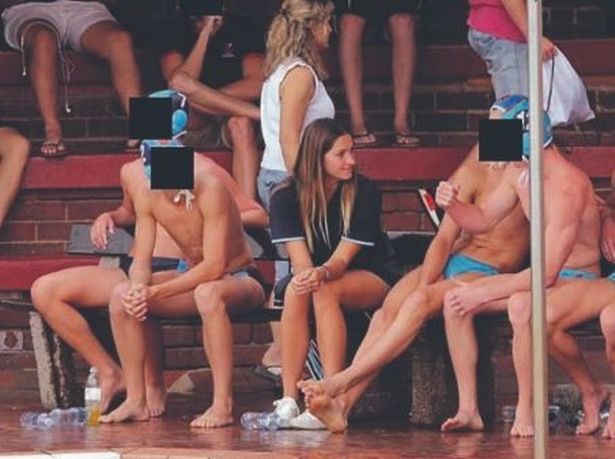 Fiona (áo đen) c̣n làm trọng tài môn bóng nước.