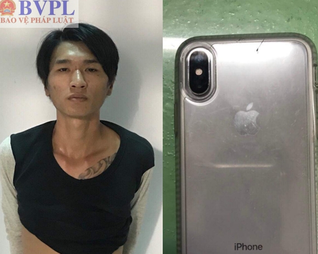 Kiểm tra trong người Tín, Công an thu giữ 2 chiếc điện thoại di động, trong đó có chiếc Iphone X của nạn nhân.