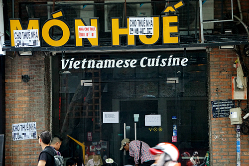 Chi nhánh Món Huế trên đường Huỳnh Thúc Kháng (quận 1, TP HCM) dán đầy thông báo cho thuê lại. Ảnh: Dỹ Tùng