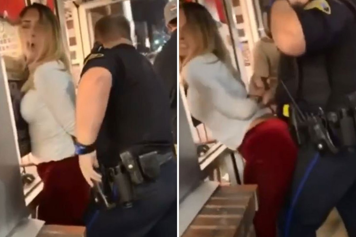 Trước khi video bắt đầu, không rõ cô gái đã nói gì với viên cảnh sát. Tuy nhiên, khi bị ép quay mặt vào cửa hàng, cô gái này cúi người, liên tục đẩy phần mông vào chỗ nhạy cảm của cảnh sát và kêu la.