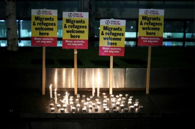 Người dân Anh thắp nến tưởng niệm 39 người chết ở Essex, bên ngoài tòa nhà chính phủ ở London . Ảnh: Reuters.