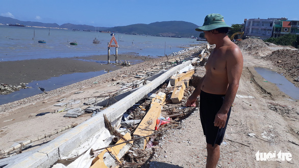 "Bão số 5 vừa qua do sóng to gió lớn đã đánh sập 480m bờ kè. Hiện đơn vị cũng đã mời tư vấn độc lập kiểm tra xác định lại nguyên nhân sập kè, để báo cáo cho UBND TP về vấn đề này" - ông Diễn nói.