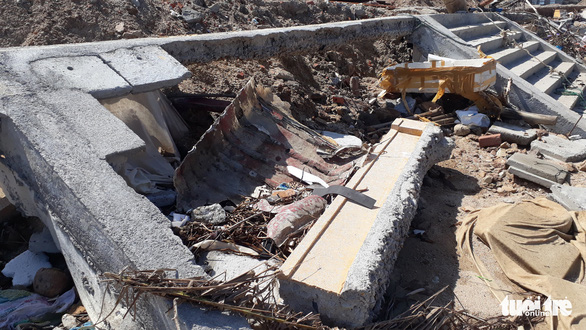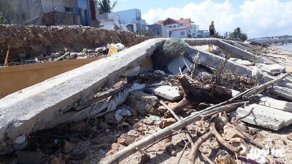 Sau hai cơn bão số 5, 6 vừa qua, hệ thống kè sông khu dân cư Bắc đường Đống Đa, TP Quy Nhơn, tỉnh Bình Định với giá trị đầu tư gần 12 tỉ đồng có chiều dài hơn 600m đã bị sóng đánh sập 480m.