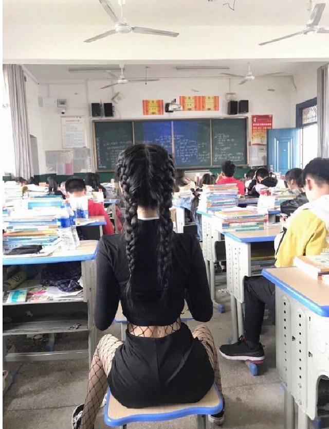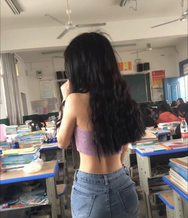 Chưa hết, khi khác, nhiều người chọn mặc trang phục xuyên thấu đến lớp lộ nội y bên trong. Nhiều bình luận nhắc nhở cô gái này nên mặc những bộ trang phục phù hợp hơn khi đi học. Hết xuyên thấu lại đến cắt xẻ, cư dân mạng xứ Trung một lần nữa phải lắc đầu ngao ngán vì bộ cánh cut sâu phía lưng thấy rõ màu áo ngực.
