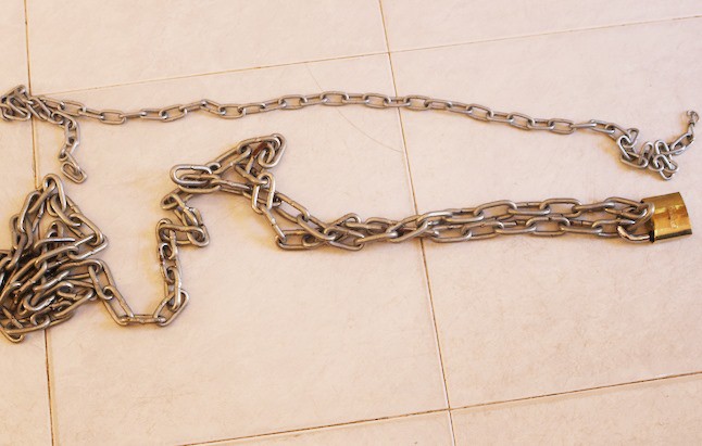Dây xích mà 2 đối tượng dùng để trói nạn nhân.