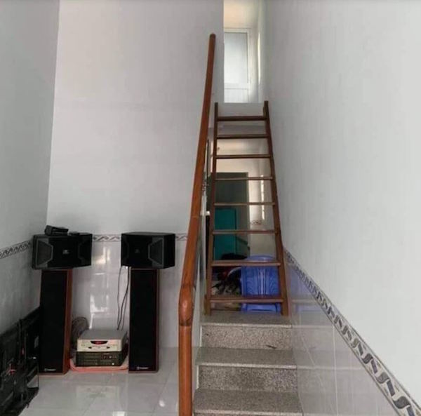 Không gian bên trong khá hẹp, có thiết kế bậc thang để lên tầng tum