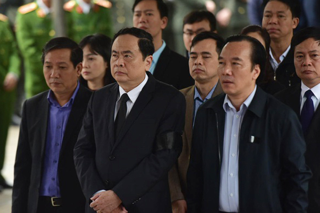 Ông Trần Thanh Mẫn - Chủ tịch Ủy ban Trung ương Mặt trận Tổ quốc Việt Nam, cùng đoàn chờ vào viếng.