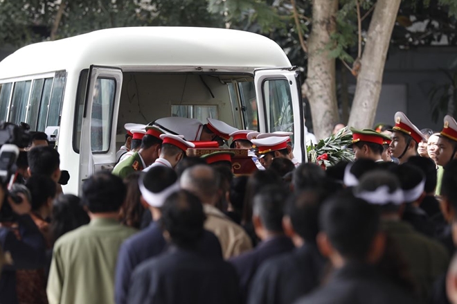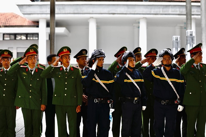 Trong niềm xúc động và tiếc thương vô hạn, Đại tướng Tô Lâm, Bộ trưởng Bộ Công an, cùng các lãnh đạo, đồng đội, bạn bè của các liệt sĩ đã bước từng bước chậm rãi theo linh cữu, tiễn biệt các liệt sĩ lần cuối cùng.