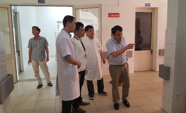 GS. Phạm Như Hiệp, Giám đốc Bệnh viện Trung ương Huế đi kiểm tra các khu vực cách ly bệnh nhân nghi nhiễm virus Corona
