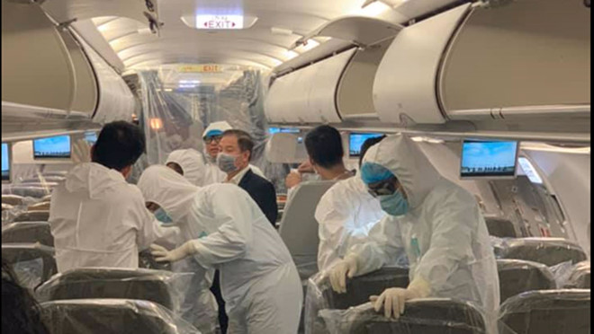 Chiếc máy bay trở về từ Vũ Hán cũng được khử trùng toàn bộ buồng lái, khoang hành khách, hầm hàng và tạm dừng khai thác trong 24 giờ để phòng ngừa tuyệt đối nguy cơ lây nhiễm virus Corona.