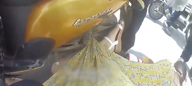 Cô gái bị mắc váy vào xe dẫn đến việc bị kéo ngã xuống đường.