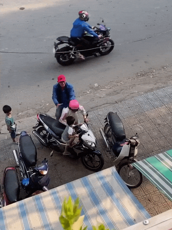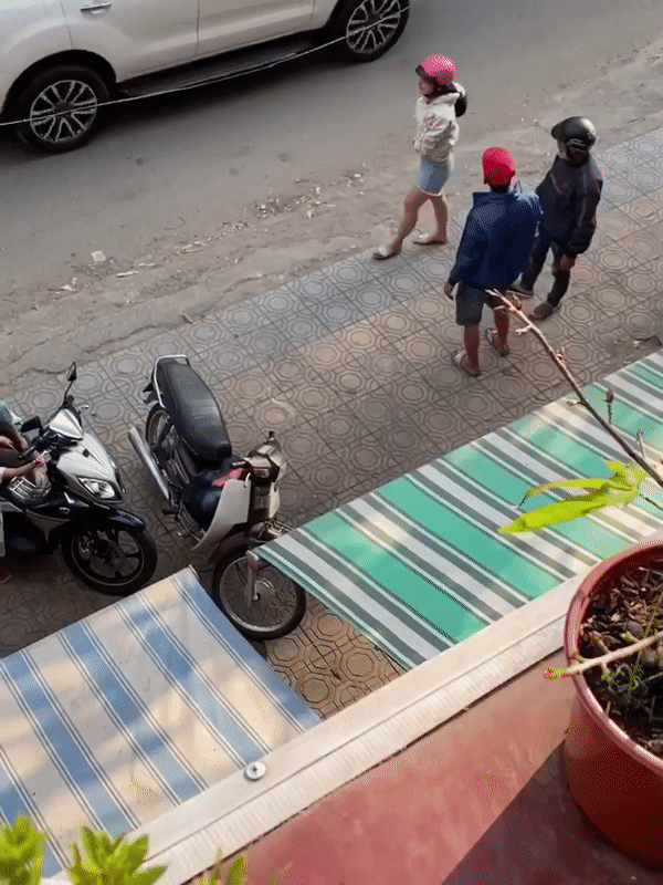 Sau khi đứng dậy, người vợ đã tiến tới chiếc xe máy nơi có 2 con nhỏ (khoảng 3-4 tuổi) đang đứng chờ. Tuy nhiên, người chồng sau đó lại lao đến chửi mắng rồi đánh vợ. Đáng nói, trước mặt 2 con, người chồng vẫn hung hăng giật tóc vợ, đẩy vợ ngã xuống đường. Chứng kiến cảnh tượng này, 2 đứa trẻ nhỏ đã vô cùng sợ hãi nhưng bất lực vì chẳng thể làm được gì. Thấy vậy, một người đã đến can ngăn và khuyên nhủ nhưng người đàn ông vẫn liên tục chửi mắng vợ mình.