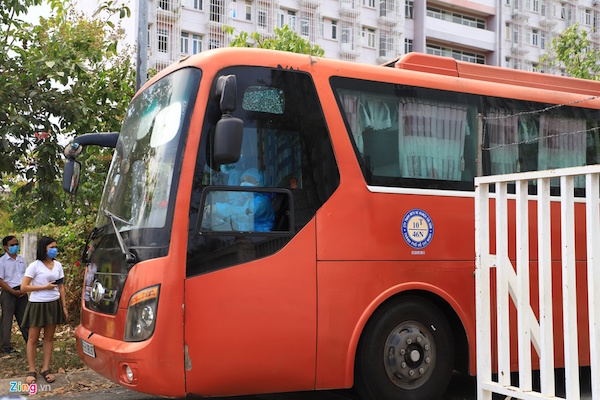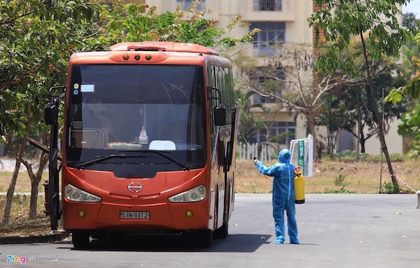 Theo ghi nhận của phóng viên, ngày 20/3, hàng chục chuyến xe chở người cách ly (chủ yếu là Việt kiều và du học sinh ở châu Âu) ra vào liên tục. Các tài xế được trang bị đồ bảo hộ toàn thân để đảm bảo an toàn.