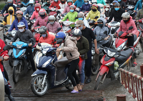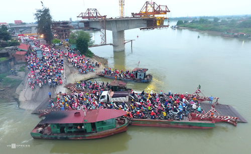 Hàng nghìn người dân chen chúc nhau tìm cách lên phà qua sông. Trong diễn biến Việt Nam đang căng mình phòng chống dịch virus Vũ Hán. Dưới đây là loạt ảnh được ghi lại.