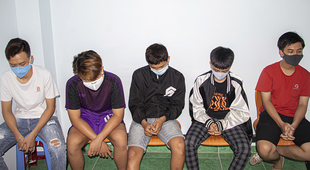 Các thanh thiếu niên liên quan đến vụ việc tại cơ quan công an. Ảnh: Công an Vĩnh Long