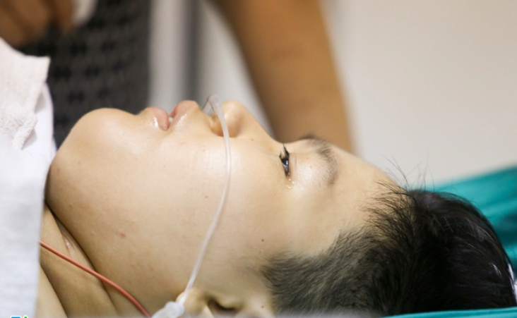 Nằm trên giường bệnh, nam sinh này nói không thể cựa mình và gặp khó khăn dù chỉ cử động nhẹ. Khi được hỏi về người bạn kém may mắn, Minh đưa mắt về phía mẹ, nước mắt em chảy dài trên gò má.
