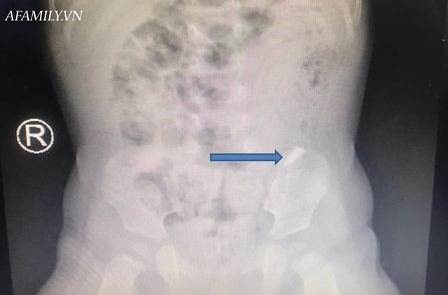 Ảnh chụp phim cho thấy dị vật nằm trong bụng bệnh nhi.