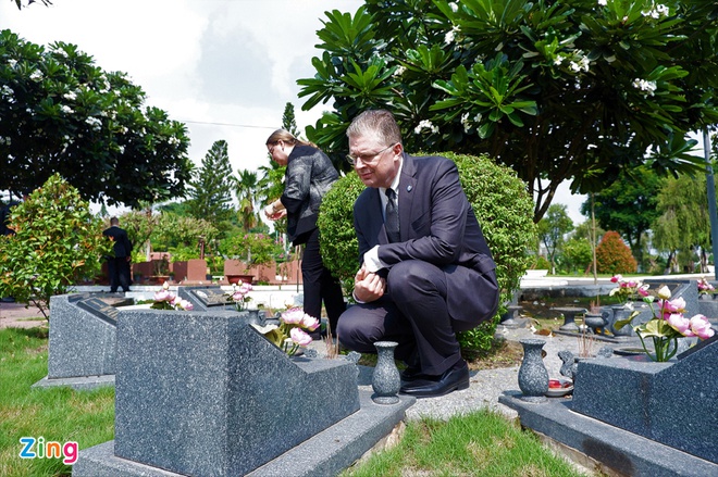 Đại sứ Mỹ trong chuyến dâng hương tại nghĩa trang ở quận 9, TP.HCM, vào sáng 21/6. Ảnh: ĐP.