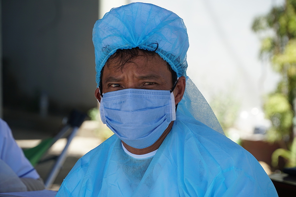 Một nhân viên y tế tại chốt kiểm tra y tế cửa ngõ phía Bắc tỉnh Quảng Ngãi, ngày 30/7. Ảnh: Phạm Linh.