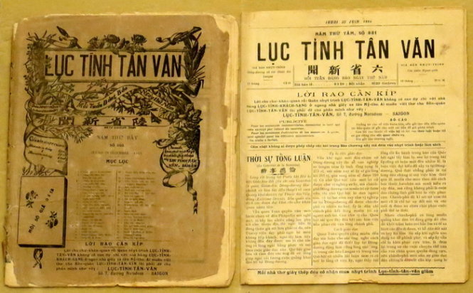 Hình ảnh (hàng dưới): Báo Lục tỉnh tân văn; tòa soạn báo Lục tỉnh tân văn tại Sài Gòn 1907.