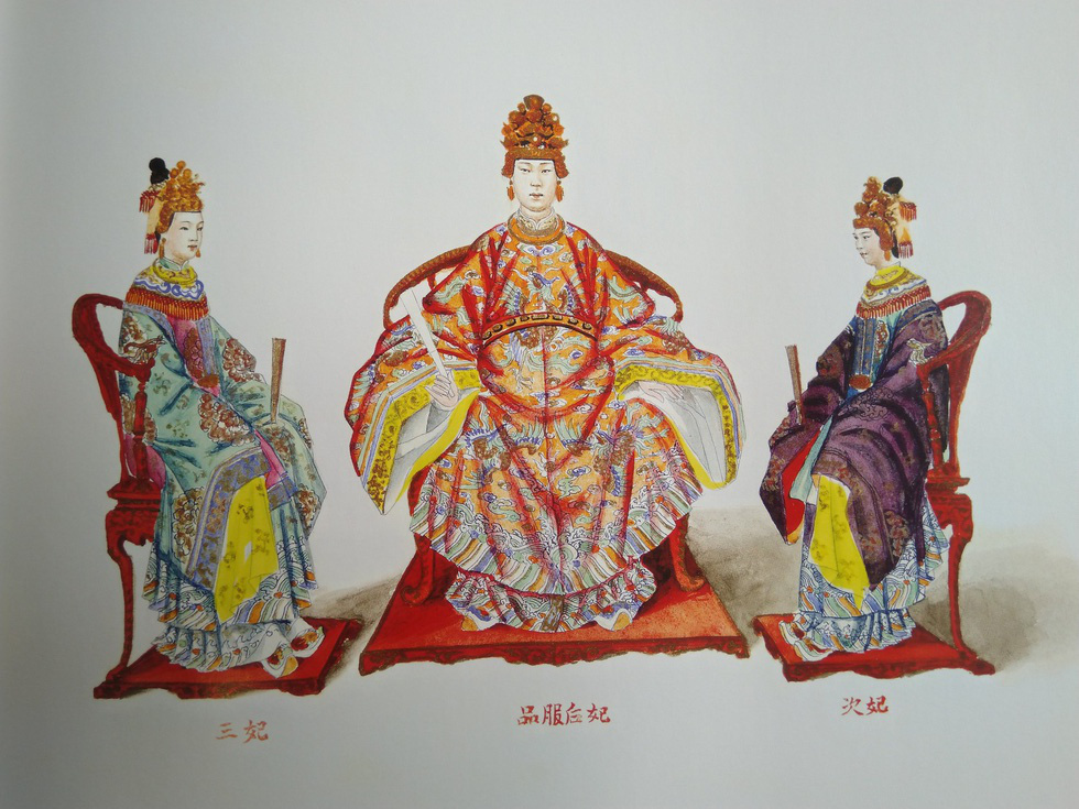 Trang phục hoàng hậu, thứ phi, tam phi triều Nguyễn. Ảnh: Thiên Điểu/ Tuổi trẻ