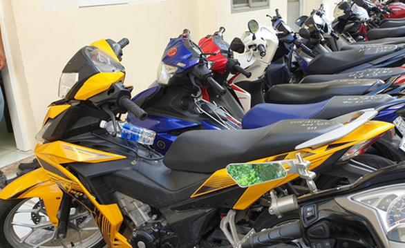 Công an tạm giữ nhiều xe máy của nhóm cướp giật - Ảnh: A.X.