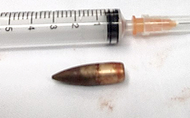 Sau hơn 1h30 phút phẫu thuật, các bác sỹ đã gắp được đầu đạn dài 3cm, đường kính 1cm ra ngoài và khâu vết thương ở tim cho bệnh nhân.