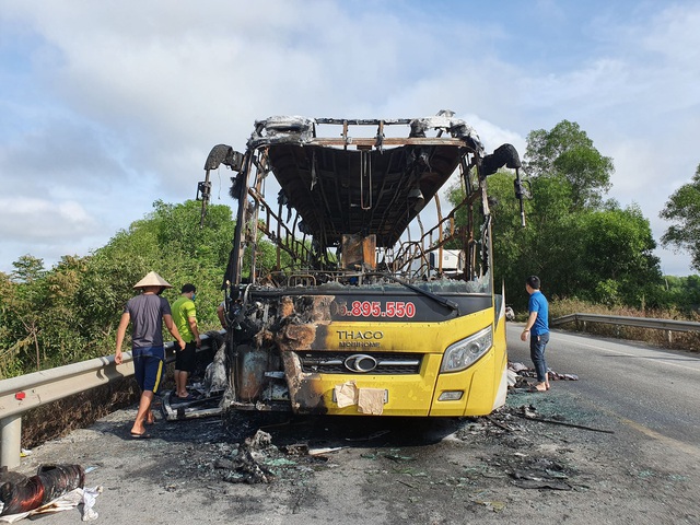 Sau 30 phút, đám cháy đã được khống chế tuy nhiên toàn bộ chiếc xe khách đã bị cháy trơ khung, hành lý cùng tài sản của hành khách đều bị thiêu rụi. Rất may, hơn 10 hành khách trên xe đều an toàn.