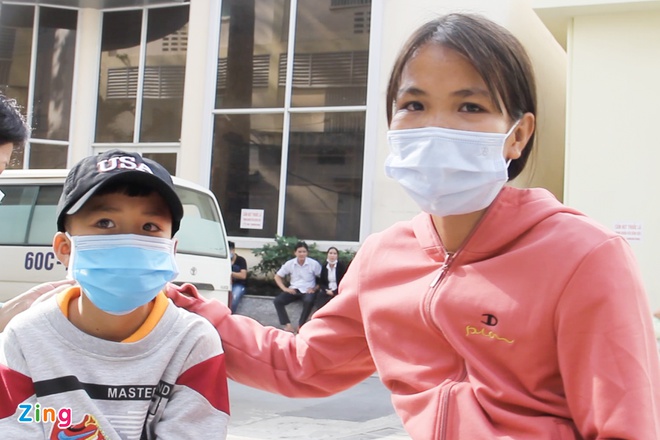 Vợ và con trai của ông T. tại Bệnh viện Chợ Rẫy. Ảnh: An Huy.