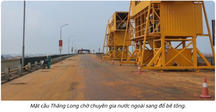 Trong khi đó, việc thi công thảm bê tông mặt cầu Thăng Long phải có sự có mặt trực tiếp của chuyên gia.