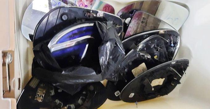 Hàng nghìn gương ôtô tang vật thu giữ tại nhà Lộc. Ảnh: Công an cung cấp.