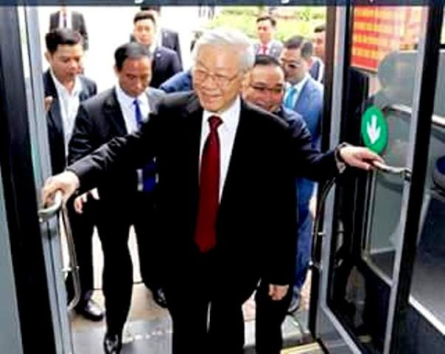 **Sau tết 2017 thấy ông tổng bí thư dẫn bầu đoàn đệ tử đi lên xe bus nhưng lại đi "đậu phộng" cửa. Cái cửa đó, nhà chế tạo thiết kế dùng để đi xuống (có mũi tên hướng dẫn hẳn hoi) thì ông lại kéo đám cận thần của mình đi lên! Chỉ có một cái xe sờ sờ trước mắt mà ông không nhận định được cửa nào lên, cửa nào xuống thì làm sao ông dẫn dắt cả dân tộc này đi lên/xuống CNXH được hè? Cái mà cả Thế Giới đều đi lên thì ông không đi, ông lại nhè con đường người ta đi xuống thì ông rán sức trèo lên. Ông chuyên làm cái chuyện ngược đời như vậy còn than thở: "không biết hết thế kỷ này có hoàn thiện được cnxh ở Vn hay không nữa"!