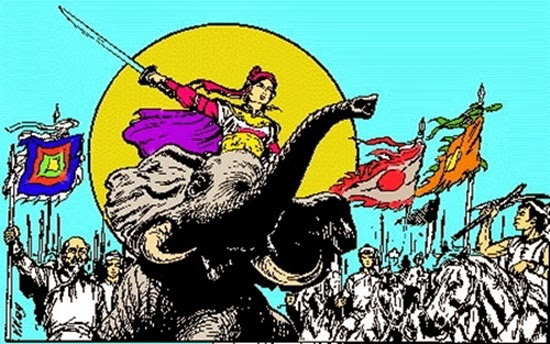 Cả 3 nữ tướng trên đều đánh giặc phương Bắc (Trưng Trắc đánh giặc Hán, Triệu Thị Trinh đánh giặc Ngô, Bùi Thị Xuân đánh giặc Thanh). Ngoài ra, cả 3 nữ tướng c̣n có điểm chung là đều cưỡi voi mỗi khi xung trận.