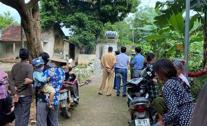 Người dân tập trung trước căn nhà vừa xảy ra án mạng sáng 7/10. Nguồn: VNE