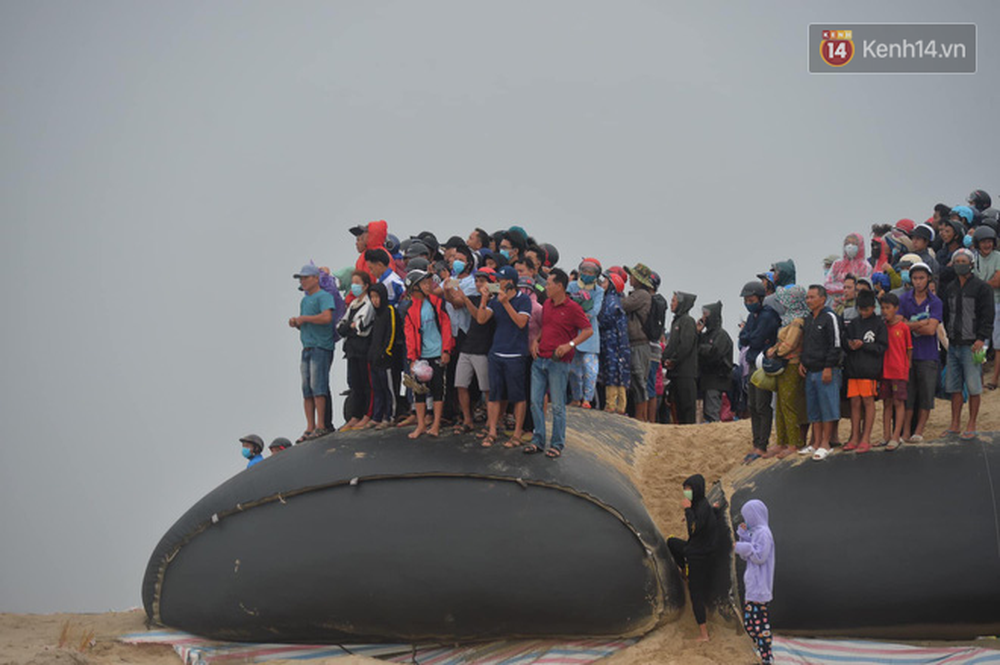 Hàng trăm bà con đã có mặt từ sáng sớm theo dõi quá trình đưa các thuyền viên vào bờ
