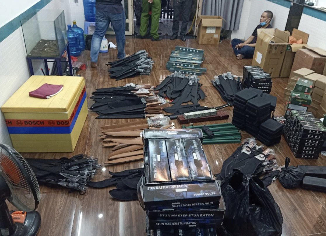 Tiến hành khám xét nơi ở của Minh và T. ở quận Thủ Đức, công an thu gần thêm 558 công cụ hỗ trợ, vũ khí thô sơ...
