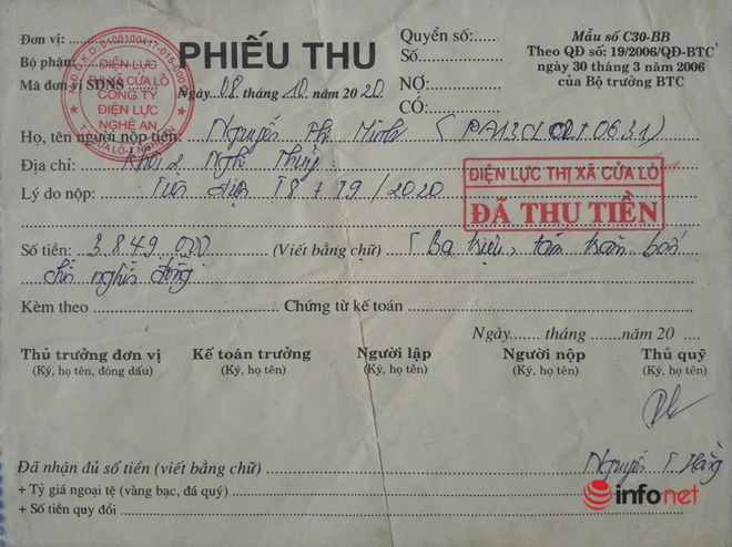 Ngày 24/10/2020, Infonet có bài: “Tá hỏa vì tiền điện tăng vọt gấp 4 lần, khách hàng chưa đồng ý nộp tiền, điện đã bị cắt”, phản ánh về việc gia đình bà Nguyễn Thị Minh trú tại khối 2, phường Nghi Thủy, TX Cửa Lò (Nghệ An) bỗng nhận được hóa đơn tiền điện chu kỳ tháng 8/2020 tăng vọt bất thường, gấp 4 lần so với những tháng trước đó, trong khi từ trước tới nay gia đình bà Minh sử dụng điện năng ổn định, giữa các tháng không chênh lệch là bao. Sau đó, bà Minh phản ánh với ngành điện thì được trả lời là công tơ đạt yêu cầu, do đó bà không đồng ý nộp tiền nên đã bị cắt điện.