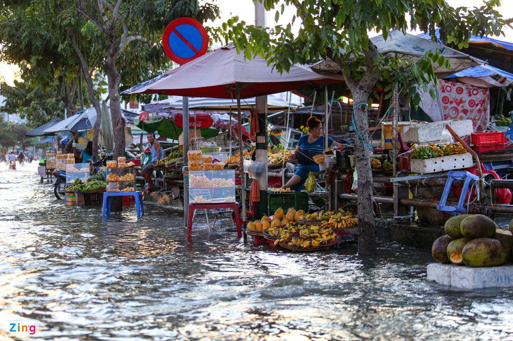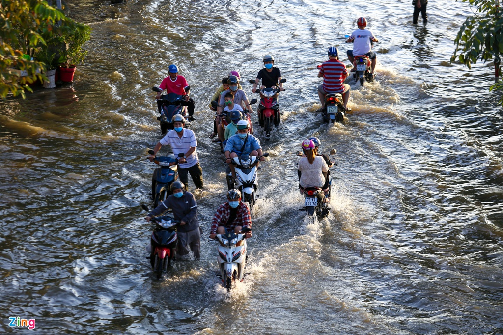 Triều cường ở TP.HCM lên cao, đường và sông hòa thành một. Triều cường tại TP.HCM chiều 15/11 bắt đầu vào chu kỳ đạt đỉnh. Nhiều tuyến đường ở quận 4 và quận 7 ngập sâu, hàng loạt xe cộ chết máy, người dân vất vả lội nước về nhà vào chiều cùng ngày