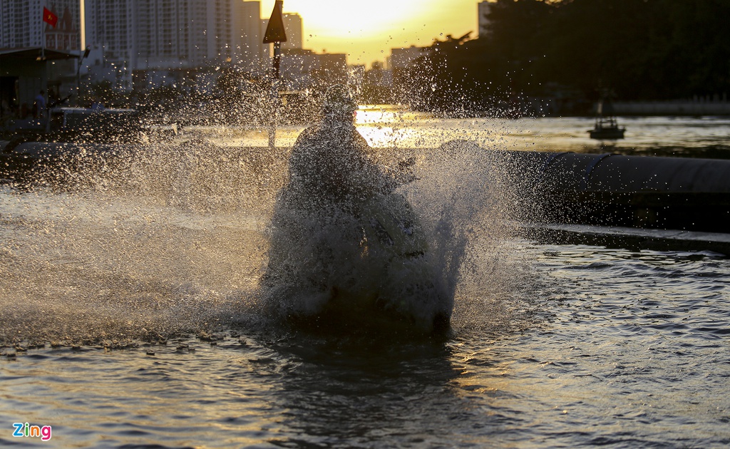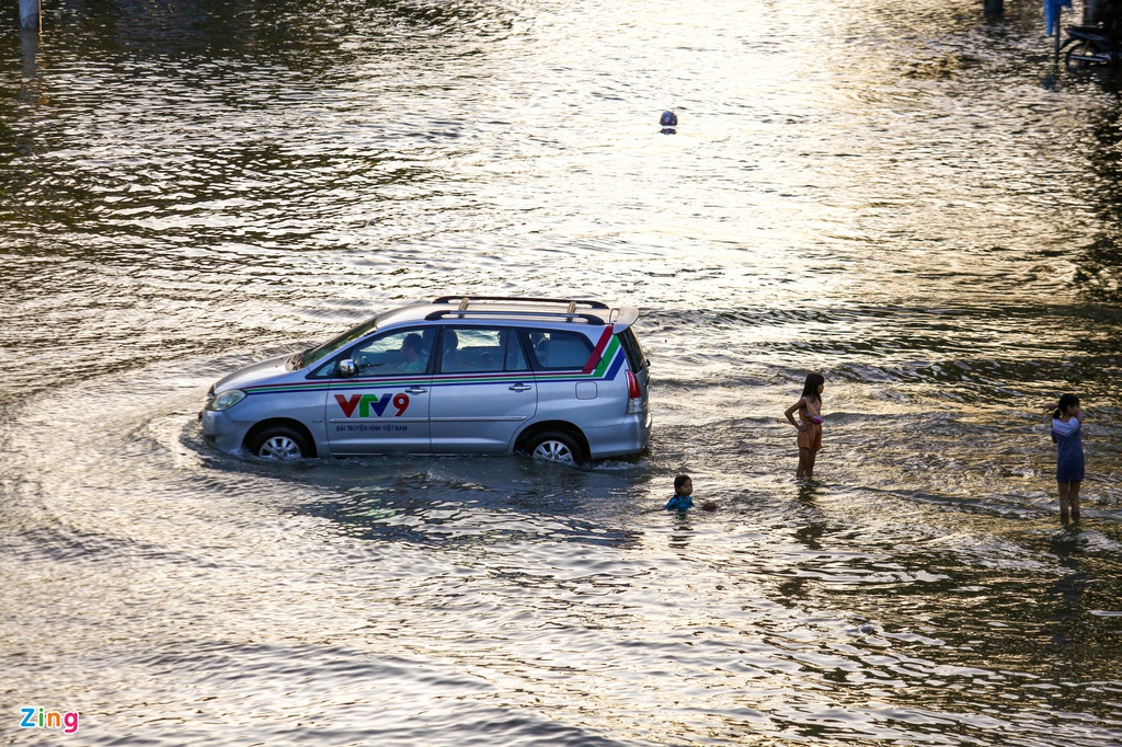 Ngập sâu nhất là đoạn công viên Nguyễn Tất Thành (dưới dạ cầu Tân Thuận). Hầu hết xe máy gầm thấp đi qua đây đều chết máy.