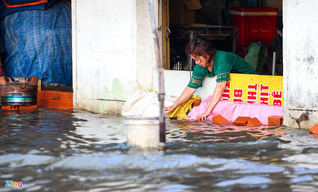 Nước tràn vào nhà khiến sinh hoạt của mọi người bị đảo lộn. Người dân sống tại đây cho biết tình trạng này diễn ra đã nhiều năm nay, mỗi lần mưa lớn hay triều cường dâng là ngập, tát nước rất vất vả.