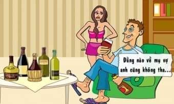 - Cậu biết không, chồng mình cứ hay đi làm về muộn lại say xỉn nữa chán quá cậu à.