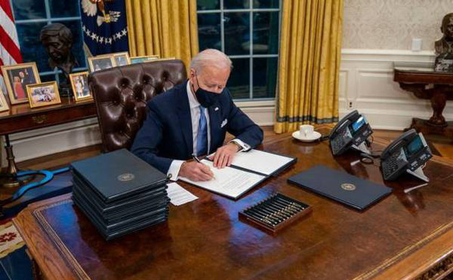 Ông Joe Biden chính thức trở thành Tổng thống Mỹ thứ 46 vào ngày 20/1. Trong ngày đầu tiếp quản Phòng Bầu Dục, ông Biden đã cho ký hàng loạt sắc lệnh và có bài phát biểu đầu tiên liên quan tới đại dịch Covid-19, vấn đề người nhập cư và biến đổi khí hậu.