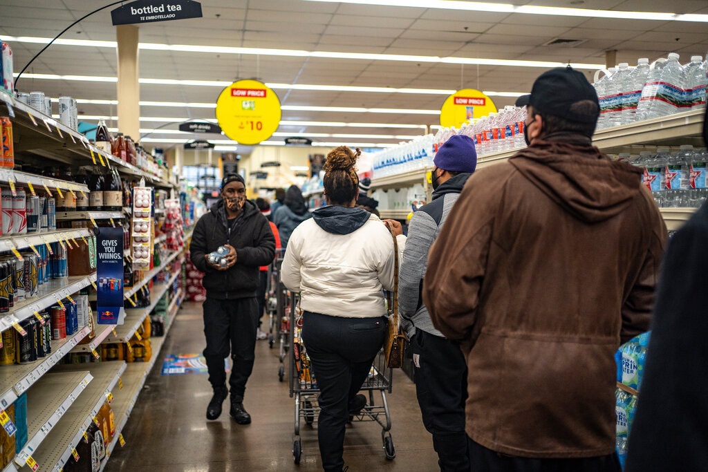 Người Dallas đồng loạt đi mua đồ ăn, nước uống khiến một số kệ hàng bắt đầu hết hàng. Ảnh: New York Times.