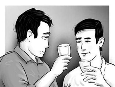 – Ấy là cứ mỗi lần… uống bia rượu vào lại hay to tiếng, cáu gắt nhặng xị ngậu lên, nhiều lúc đập phá đồ đạc. Cho nên cháu phải hiểu để mà…