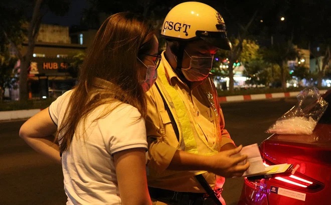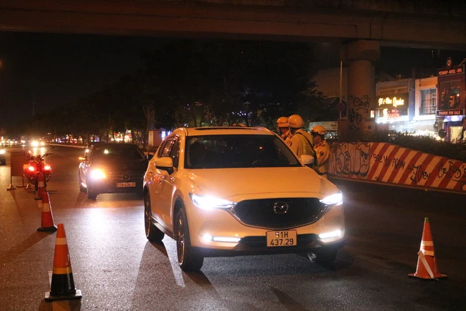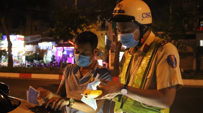 Khuya 18/3, Đội CSGT Tuần tra dẫn đoàn thuộc Phòng Cảnh sát giao thông đường bộ, đường sắt (PC08) Công an TP.HCM đã lập chốt đo nồng độ cồn theo kinh nghiệm quốc tế trên tuyến đại lộ Phạm Văn Đồng.