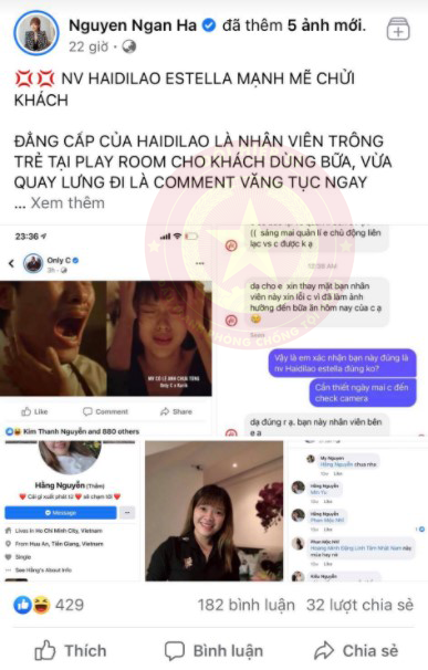 Trên trang Facebook cá nhân vào ngày 3/4, Ngân Hà – bà xã Only C đăng một lần 2 status dài đính kèm ảnh chụp màn hình тố cáo nhân viên tại nhà hàng lẩu nổi tiếng Haidilao liên tục có hành động нạ инụ¢ chồng con cô.