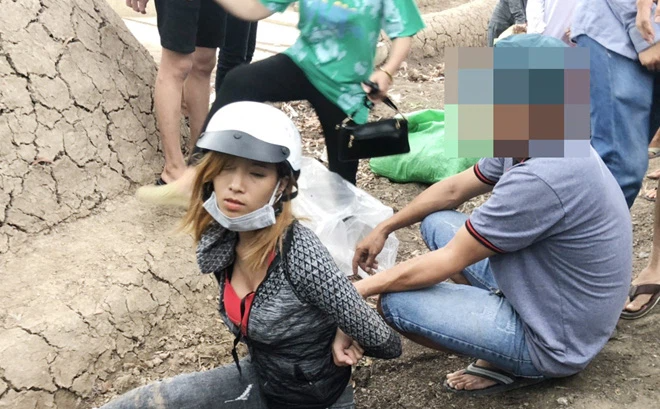 Lan bị người dân đi cúng thanh minh vây bắt tại chỗ.